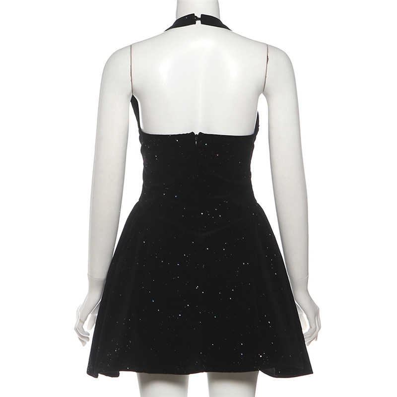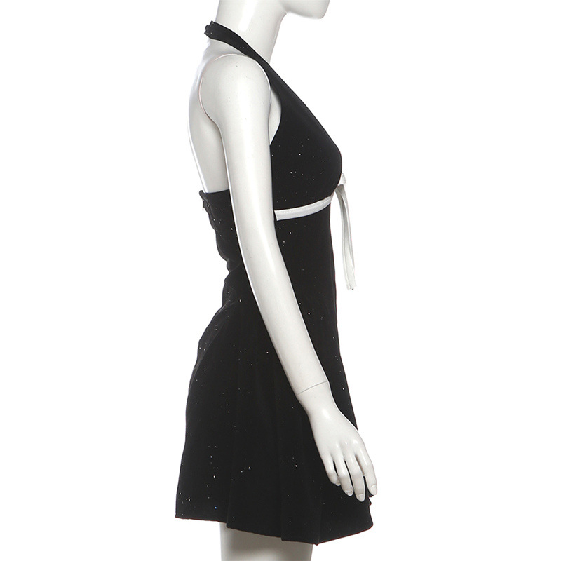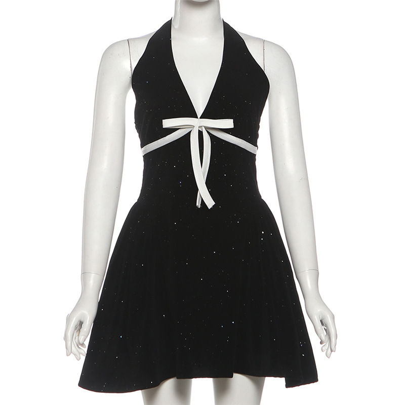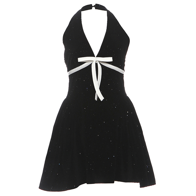 Christmas halter neck backless V-neck bow waist-cinching dress
