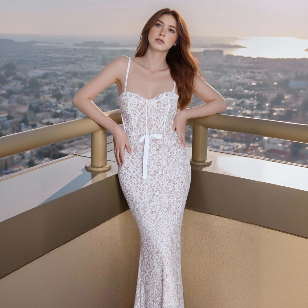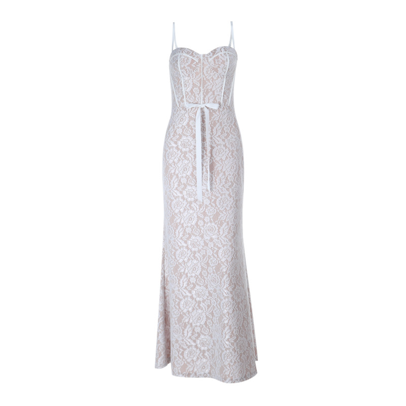 Instagram-style embroidered halter-neck A-line maxi dress with bodycon skirt