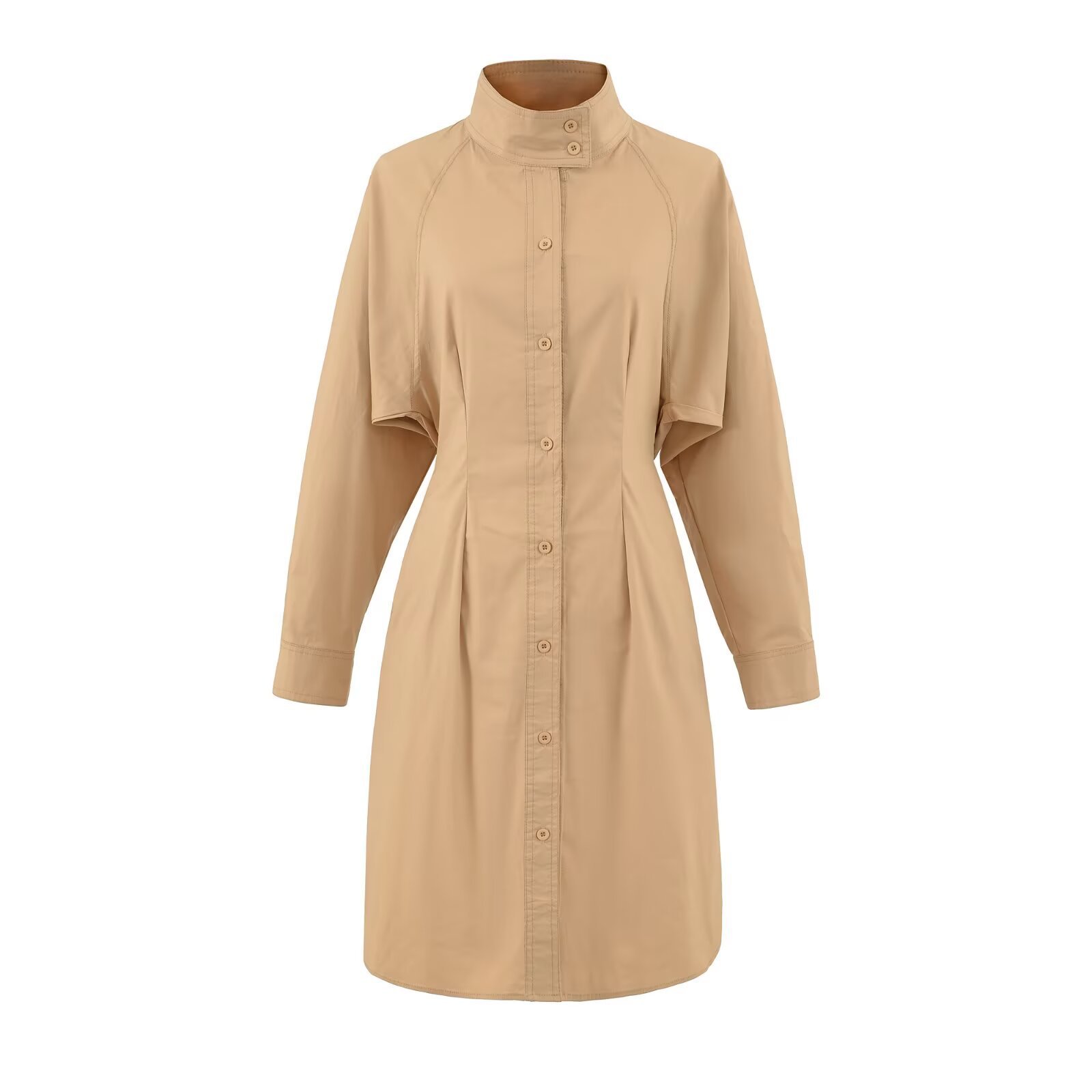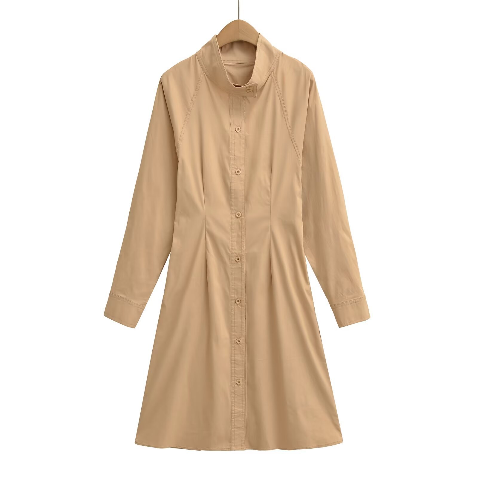 Loose-fitting, casual high-neck long-sleeved trench coat dress