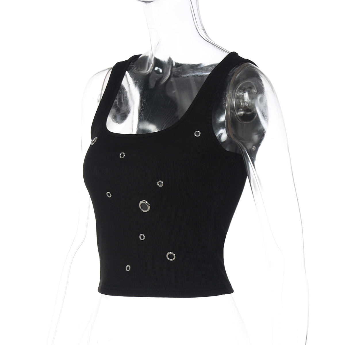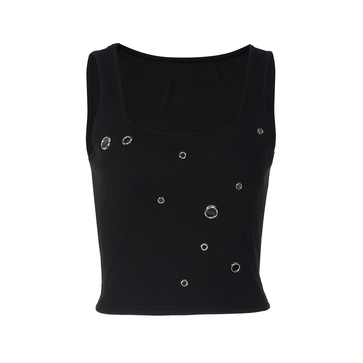 Stylish and unique eyelet-style slim-fitting solid color tank top