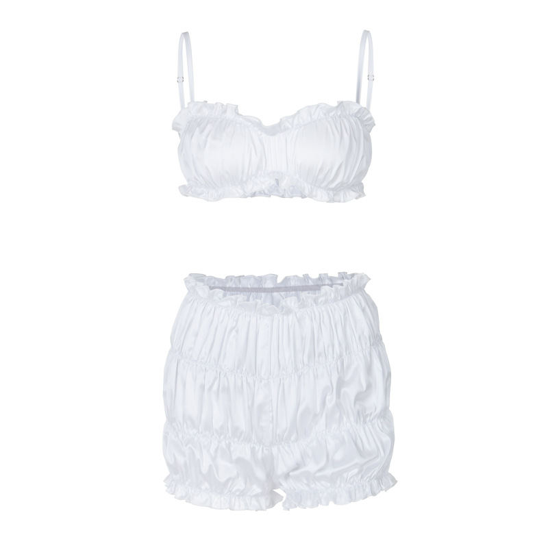 Fashionable and sexy halter top strapless slim-fit pleated shorts set