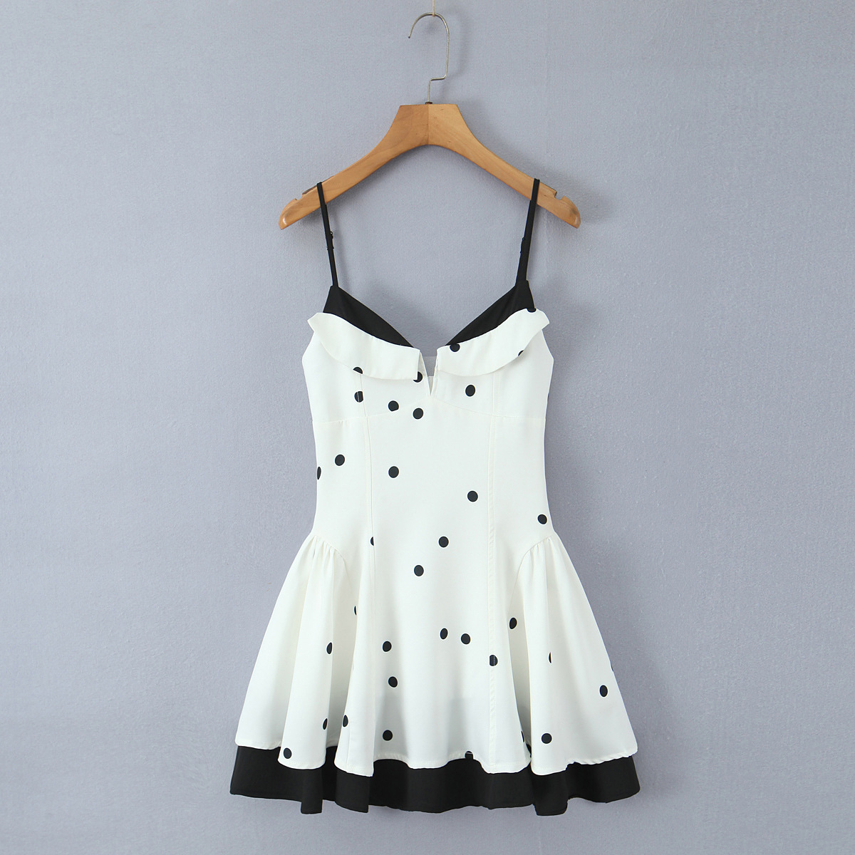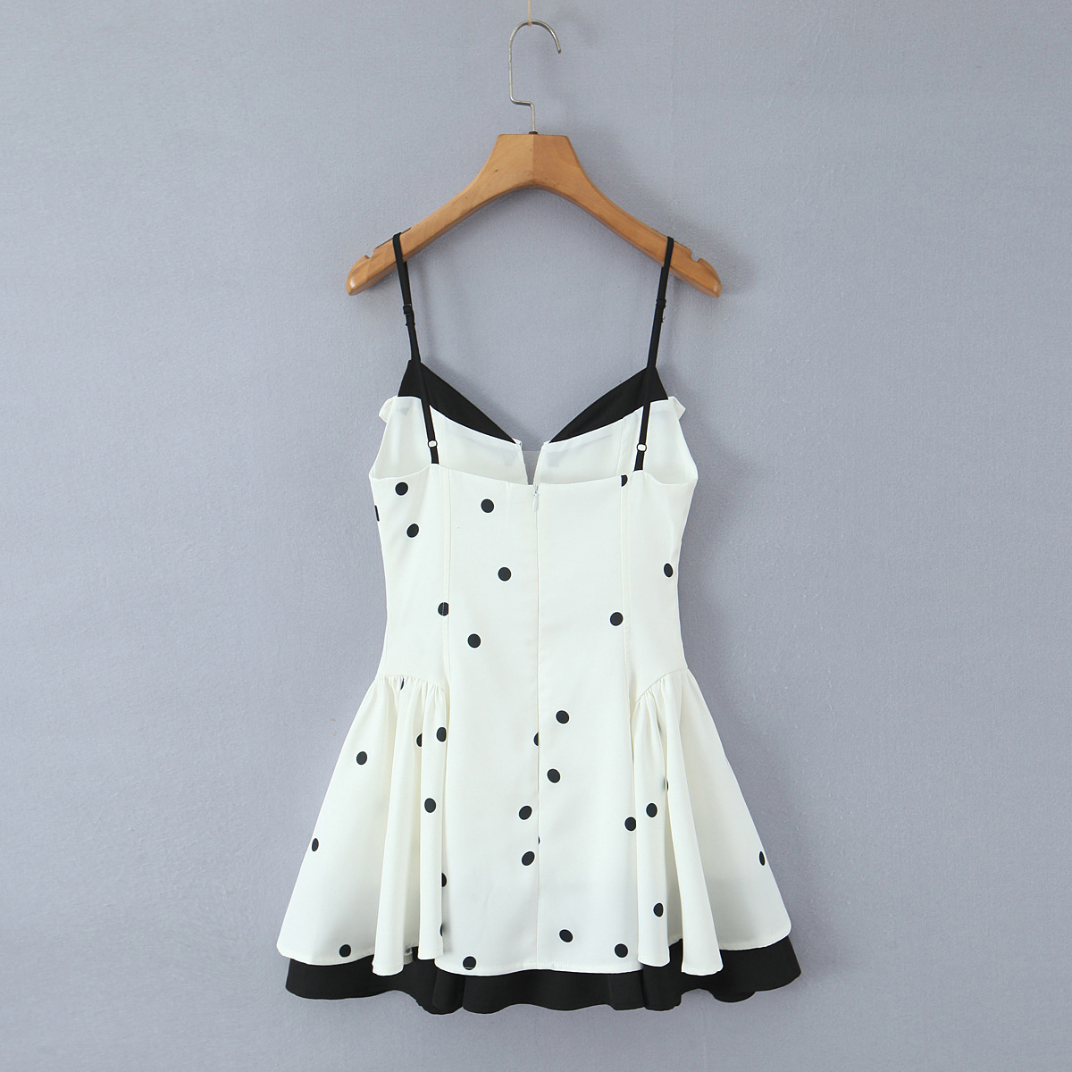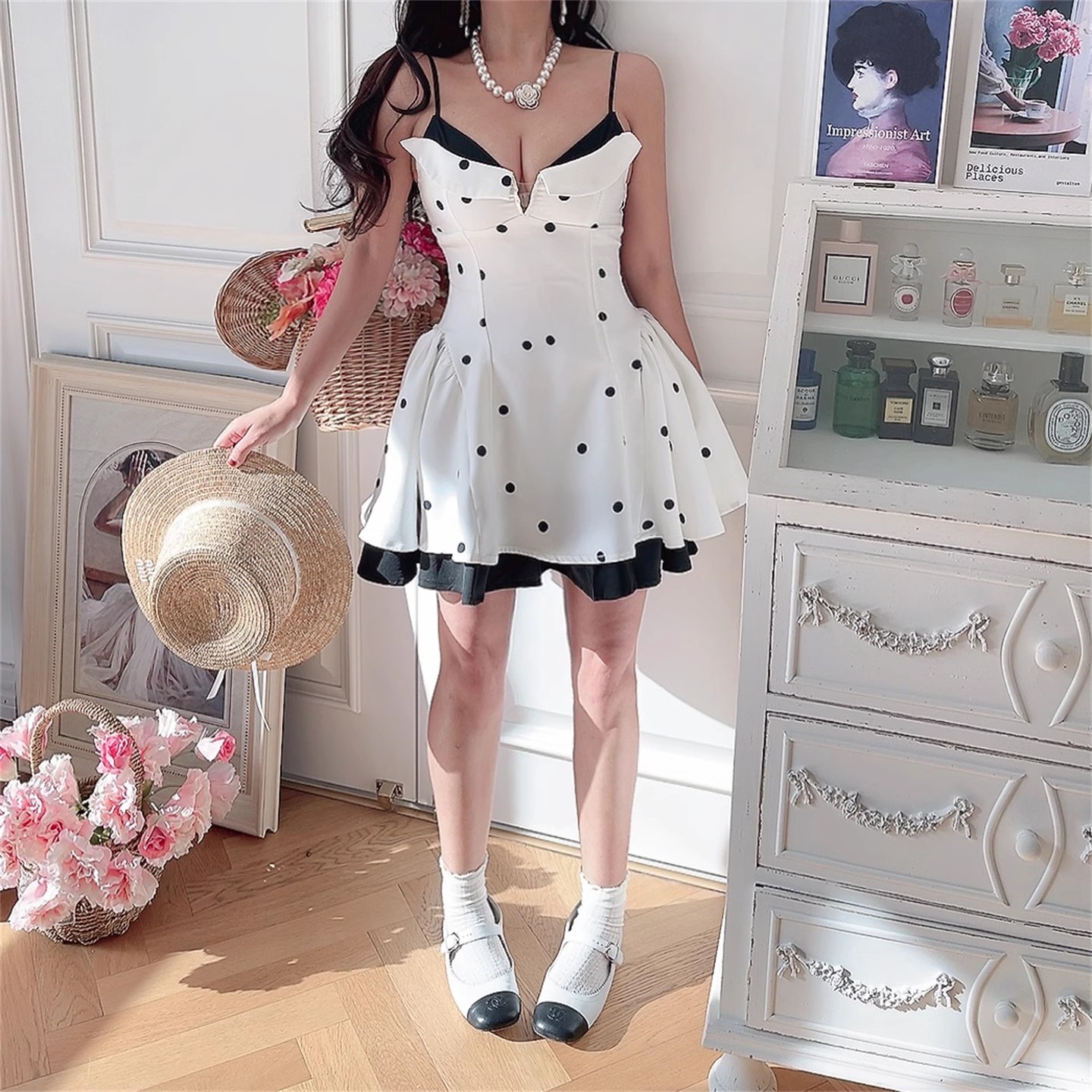 Sexy and sweet polka dot patchwork dress with a high-waisted design