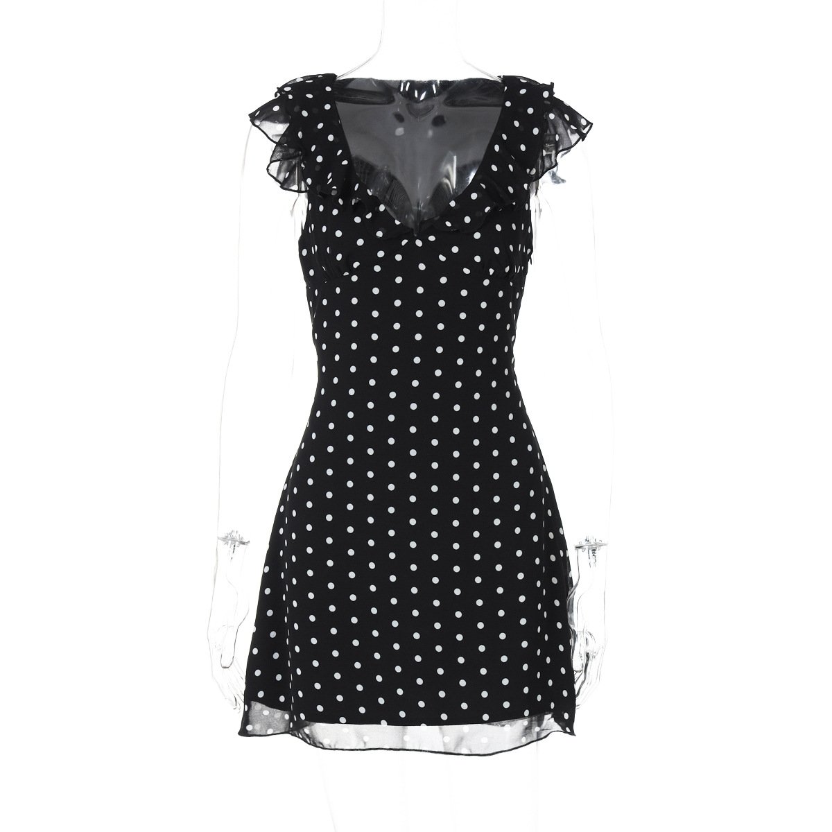 Sexy V-neck patchwork mesh waist-cinching versatile short dress