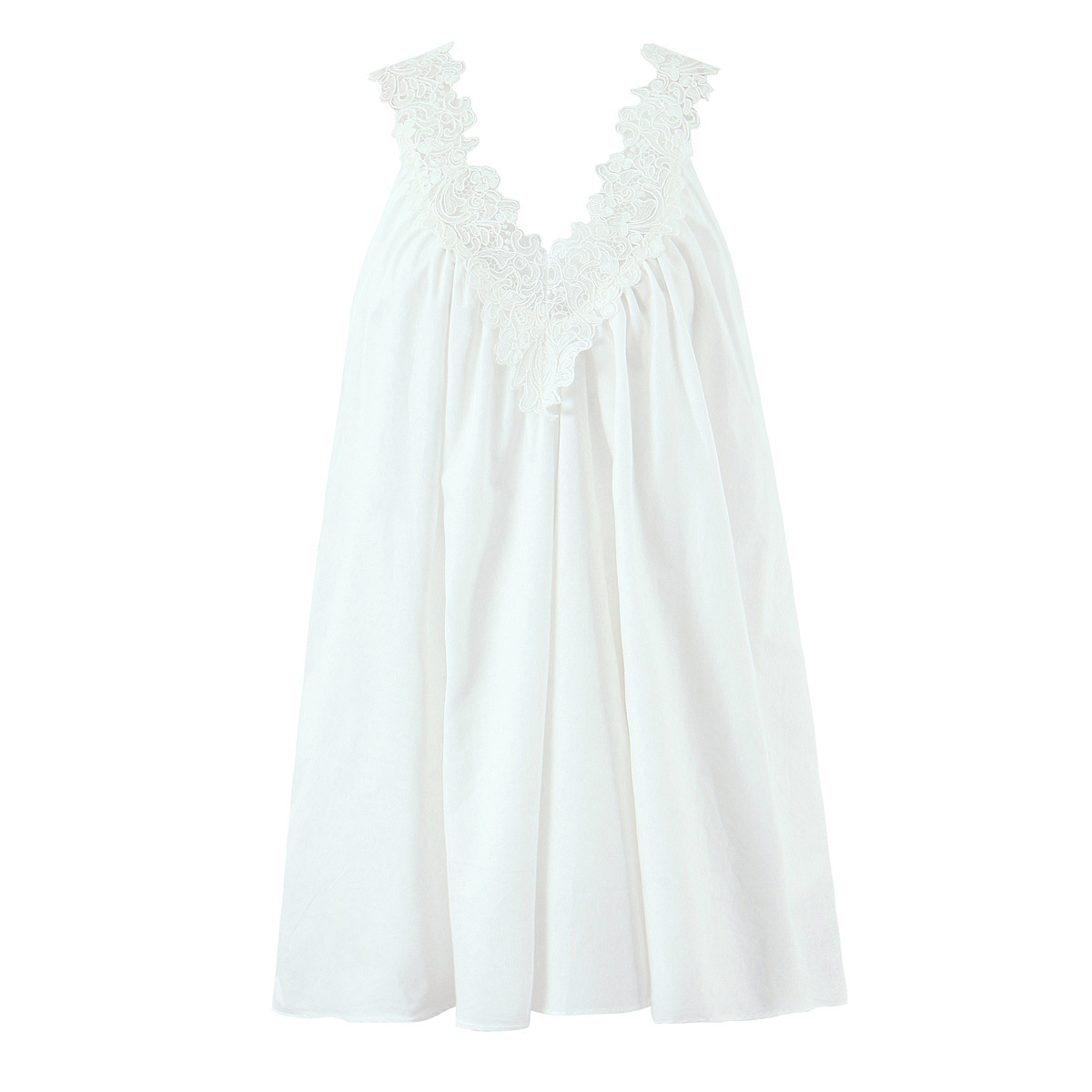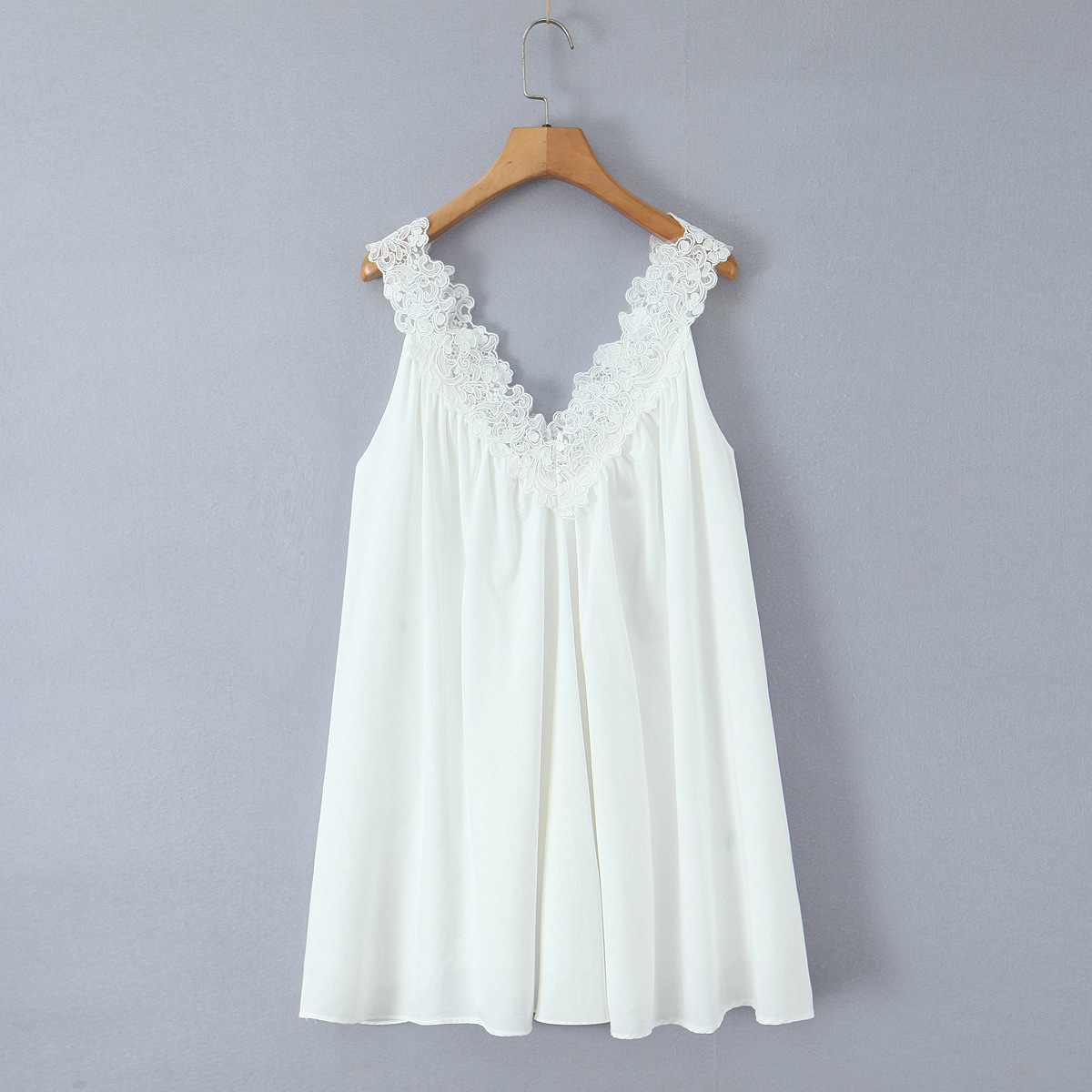 Sexy V-neck sleeveless dress with lace paneling and pleated design.