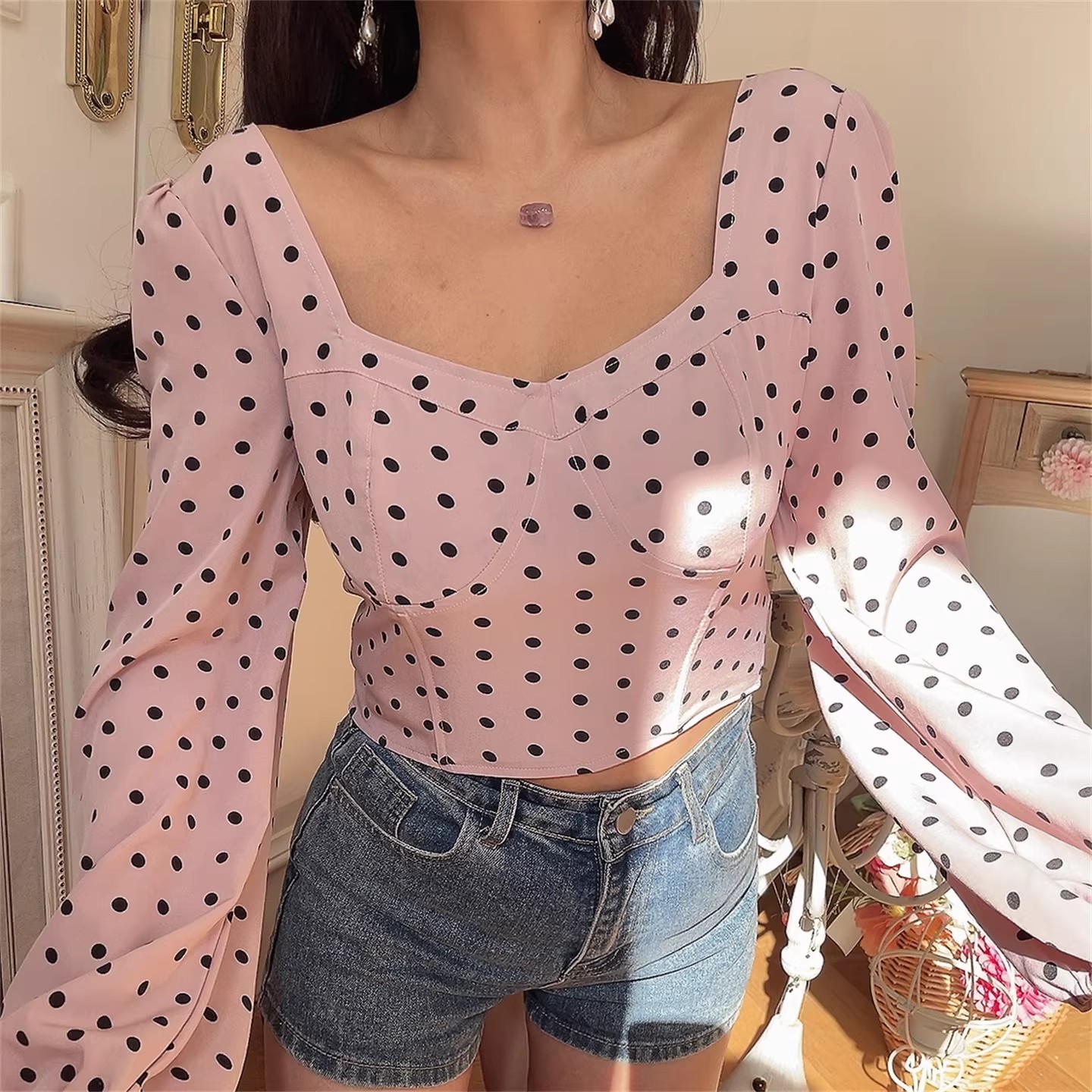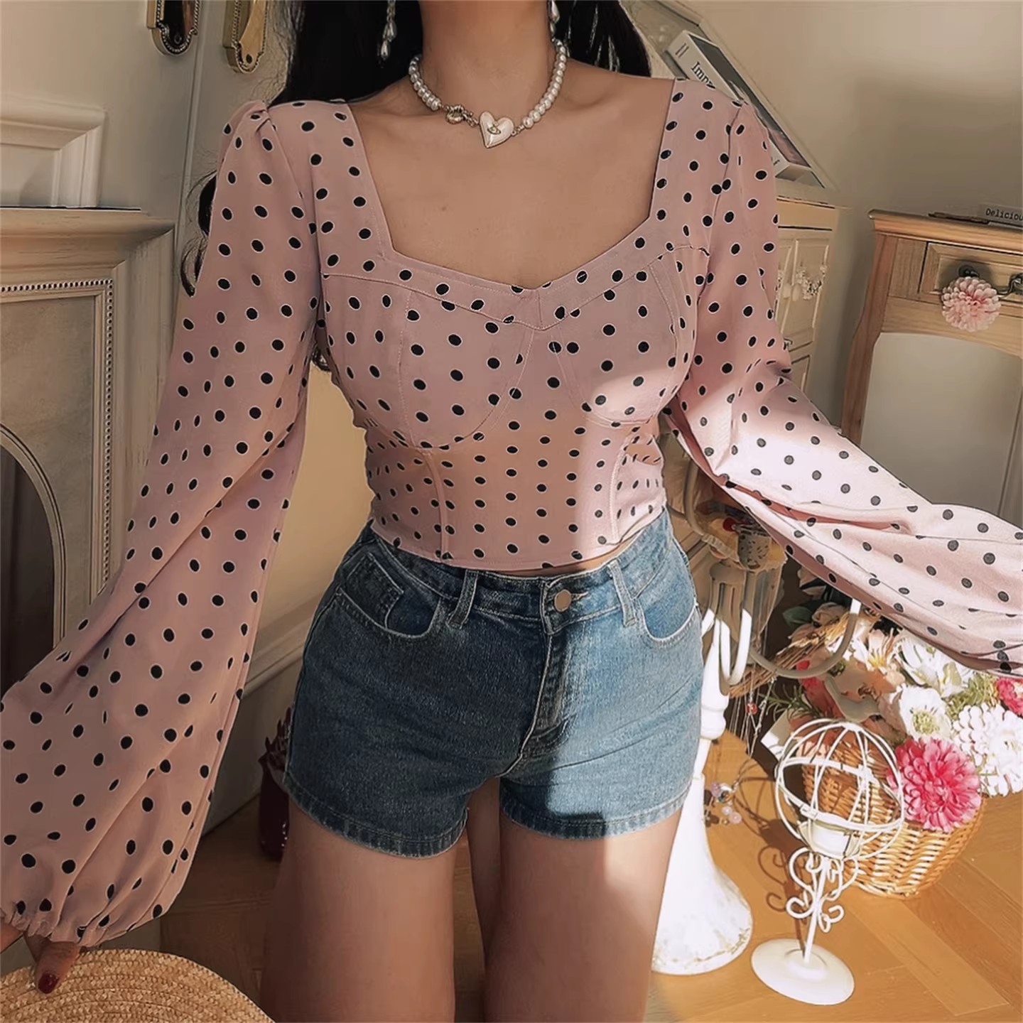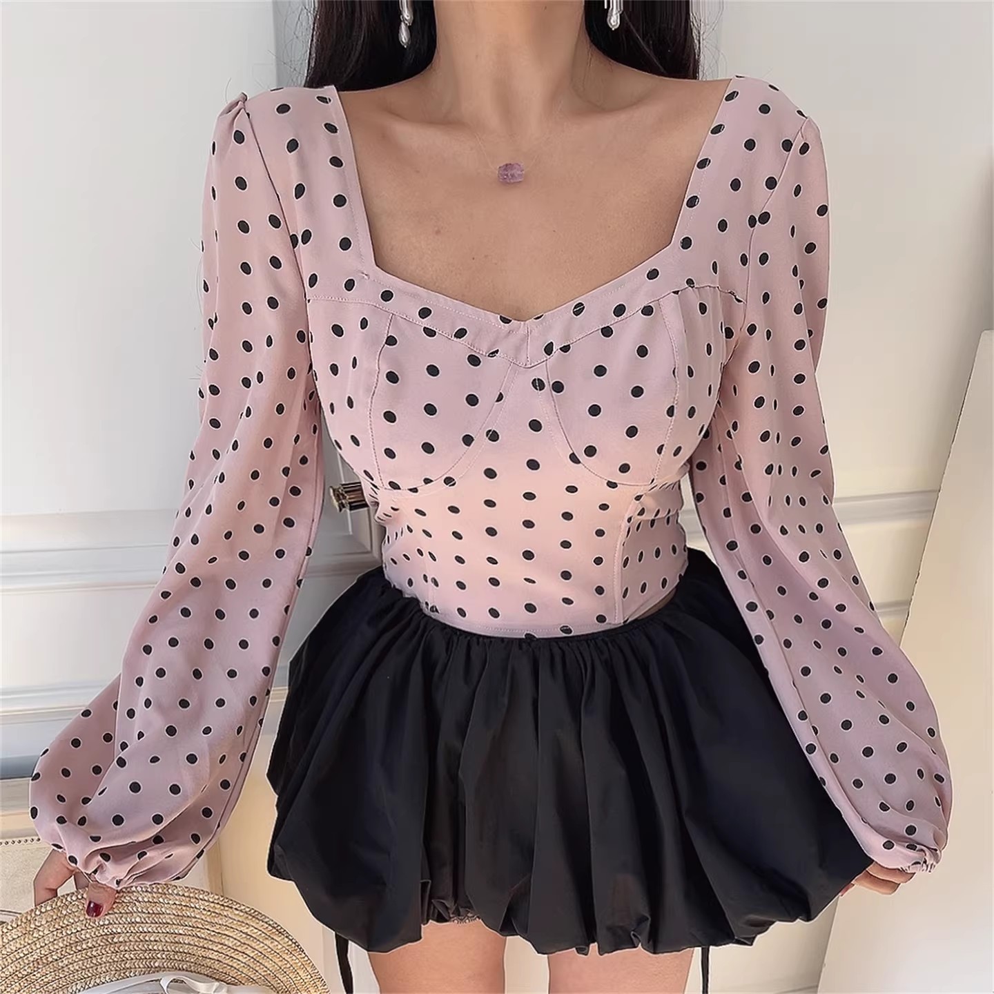 Stylish and elegant T-shirt with puff sleeves, square neckline, and boning detail.