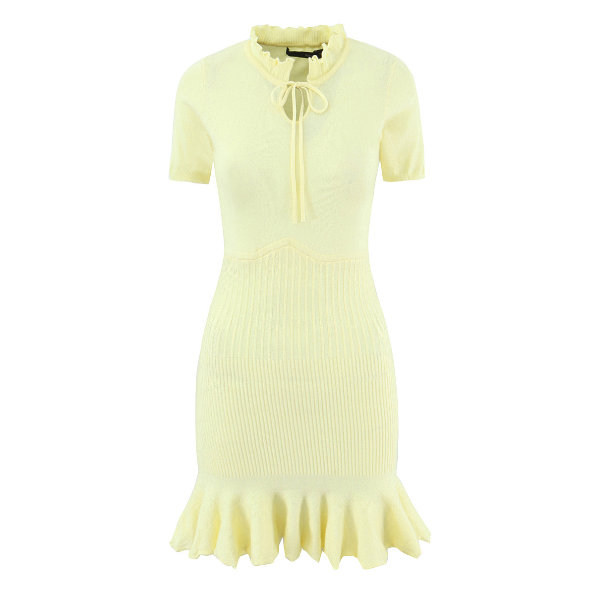 Retro-style ruffled, stretchy knit ribbed bodycon skirt
